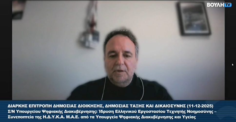 2. Στις 11 Δεκεμβρίου 2025 η ΕΕΒΤ εκπροσωπήθηκε, κατόπιν σχετικής πρόσκλησης, από το μέλος και Αναπληρωτή Καθηγητή στο Πάντειο Πανεπιστήμιο κ. Κώστα Καρπούζη στη συνεδρίαση της Διαρκούς Επιτροπής Δημόσιας Διοίκησης, Δημόσιας Τάξης και Δικαιοσύνης της Βουλής των Ελλήνων με θέμα ημερησίας διάταξης «Συνέχιση της επεξεργασίας και εξέτασης του σχεδίου νόμου του Υπουργείου Ψηφιακής Διακυβέρνησης “Ίδρυση Ελληνικού Εργοστασίου Τεχνητής Νοημοσύνης – Συνεποπτεία της Η.Δ.Υ.Κ.Α. Μ.Α.Ε. από τα Υπουργεία Ψηφιακής Διακυβέρνησης και Υγείας”». Το βίντεο της συνεδρίασης είναι διαθέσιμο εδώ.