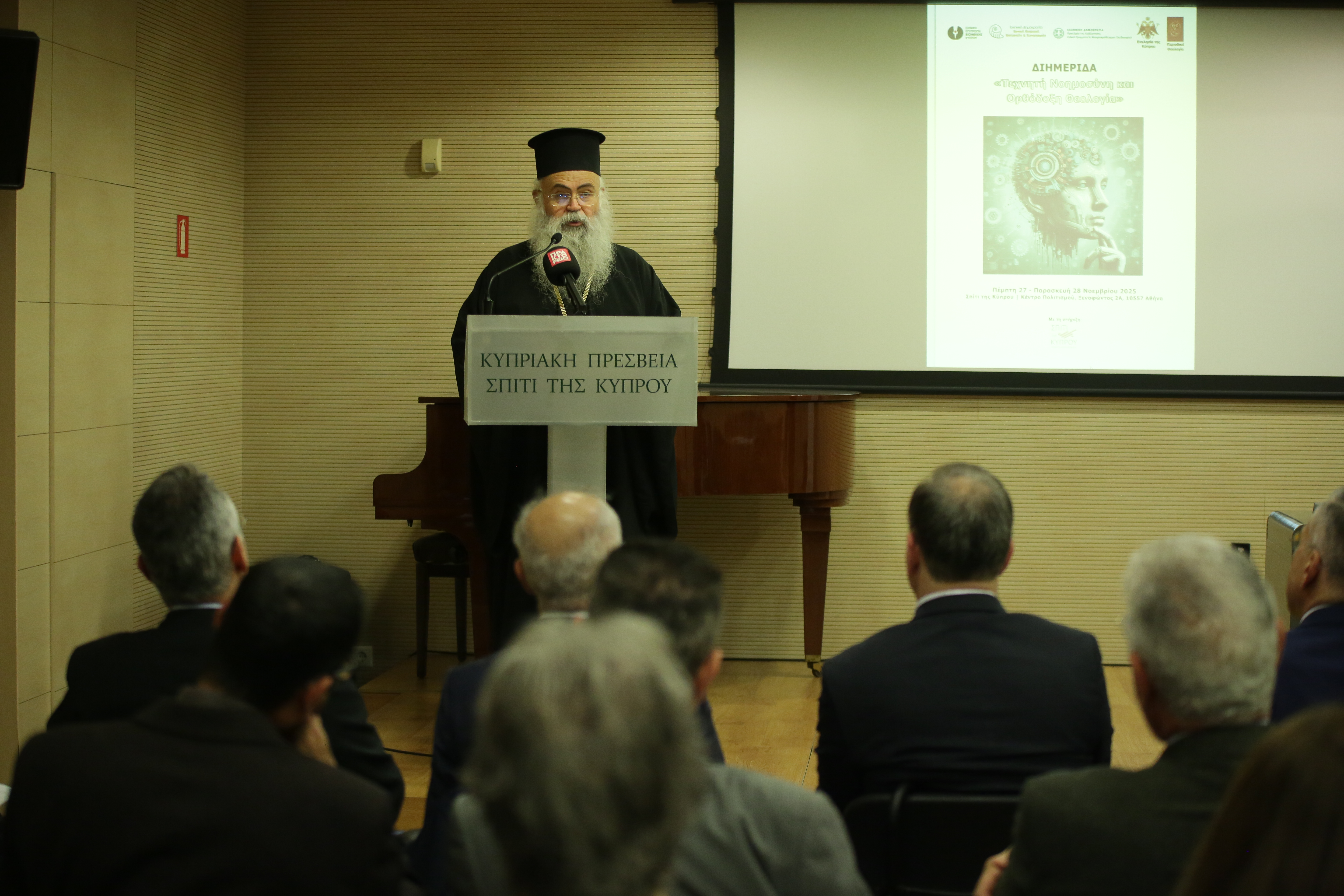Η Εθνική Επιτροπή Βιοηθικής Κύπρου, η Εθνική Επιτροπή Βιοηθικής και Τεχνοηθικής, η Ειδική Γραμματεία Μακροπρόθεσμου Σχεδιασμού της Προεδρίας της Κυβέρνησης, η Εκκλησία της Κύπρου και το περιοδικό «Θεολογία» συνδιοργάνωσαν στις 27-28 Νοεμβρίου 2025 διημερίδα με θέμα «Τεχνητή Νοημοσύνη και Ορθόδοξη Θεολογία» στο Σπίτι της Κύπρου/Κέντρο Πολιτισμού.