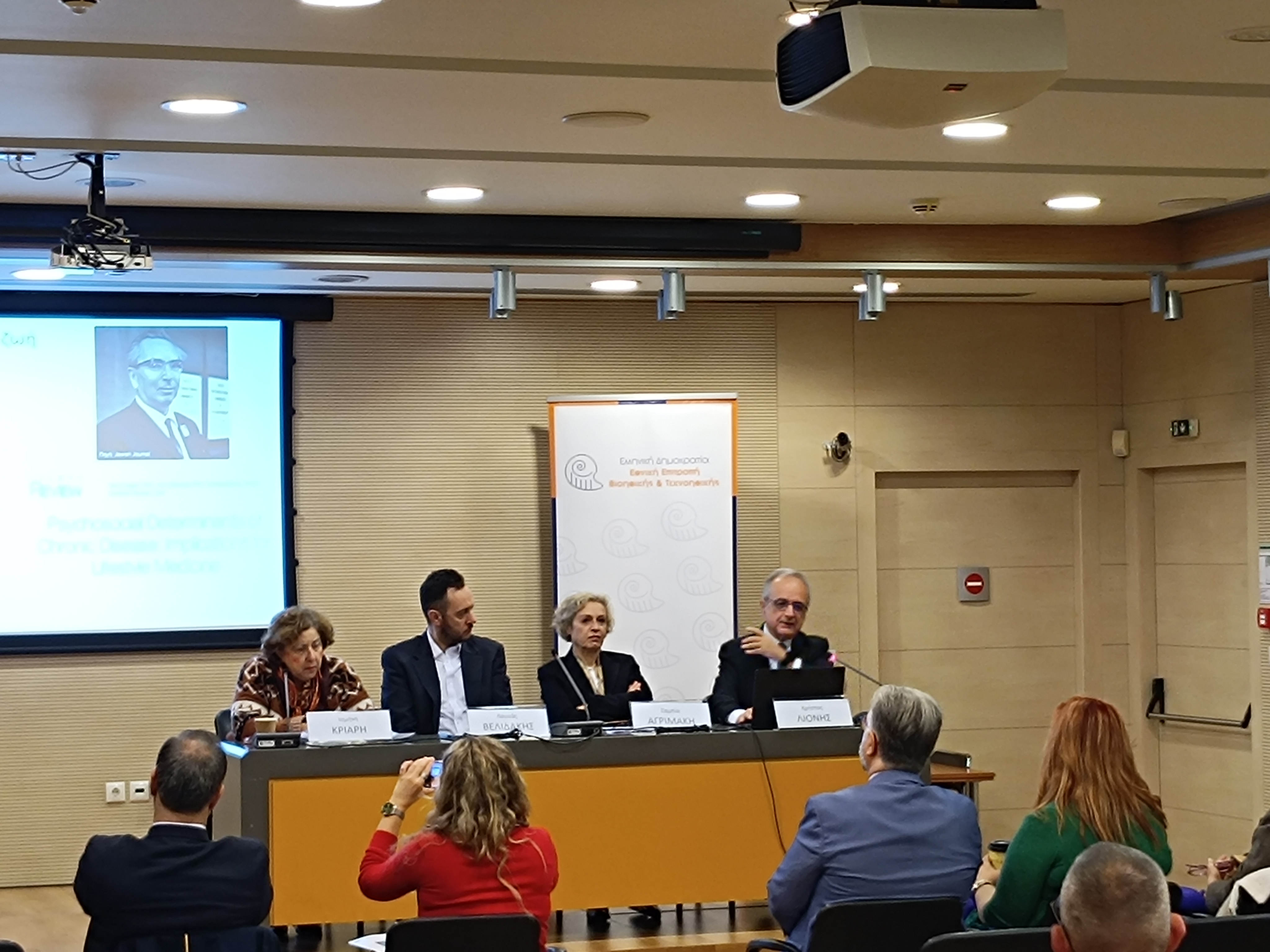 Ο Ομότιμος Καθηγητής και μέλος της ΕΕΒΤ, κ. Χρήστος Λιονής, έκανε εισήγηση με θέμα «Θρησκευτικότητα και πνευματικότητα ως σημαντικοί προσδιοριστές της ευζωίας: Ο ρόλος των επαγγελματιών υγείας και της τεχνητής νοημοσύνης», ενώ η Ομότιμη Καθηγήτρια και μέλος της ΕΕΒΤ, κ. Ισμήνη Κριάρη, εισηγήθηκε το θέμα «Οι βιοηθικές αρχές μπροστά στις προκλήσεις του μετανθρωπισμού».